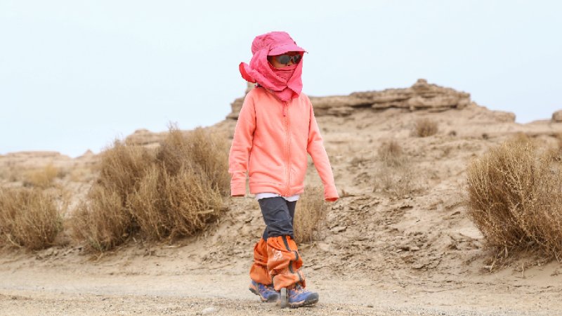 頂烈日、冒酷暑、斗風(fēng)沙。上至六旬的長(zhǎng)者、下至五歲的孩子,面對(duì)惡劣的自然環(huán)境,部分成員出現(xiàn)中暑、全腳磨泡、腳趾出血、心率加快等身體不適,不拋棄、不放棄,憑借著不畏艱難、勇于挑戰(zhàn)的堅(jiān)定信念,相互鼓勵(lì)和扶持,最終全員成功完成挑戰(zhàn)。